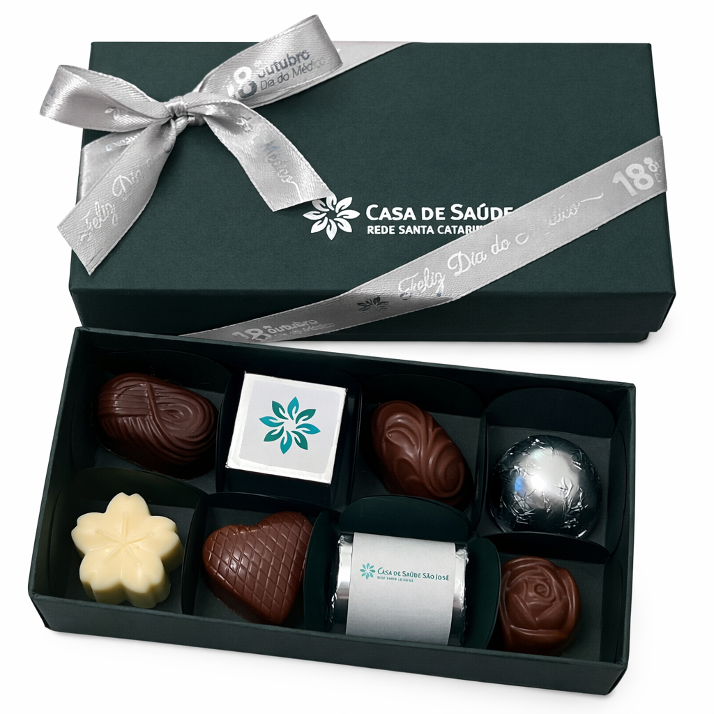 Caixa personalizada na embalagem, fita e bombons. Um charme essa caixa e faz muito sucesso. Eventos, congressos e um mimo fácil de carregar. Pedido mínimo 50 unidades. Produzimos na cor mais próxima da sua identidade visual. Consulte o prazo para podermos atende-lo. Os bombons são sortidos com chocolate ao leite, amargo e branco. Uma delicia.